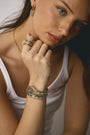 Each piece is thoughtfully crafted using recycled 925 sterling silver and finished with a rich layer of 18K gold plating. This combination delivers lasting durability with a warm, radiant glow—bringing together everyday wearability and refined luxury in a timeless design.